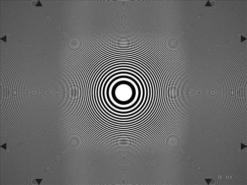 TE114-Q用于攝影機的抗“串色”干擾以及傳輸系統(tǒng)的性能進行測試。圖卡上布滿了波帶片,并且光學(xué)頻率和波帶成正比的增加。中間位置為2MHz,邊緣位置為1MHz。水平方向上最高頻率為8MHz,垂直方向最高頻率為6MHz。