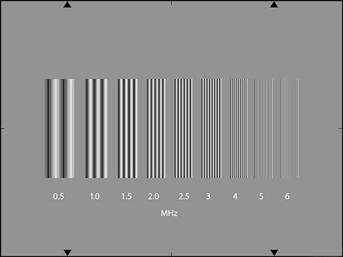 是專為測(cè)量水平的靜態(tài)分辨率。它顯示了垂直條,給出正弦視頻響應(yīng)的密度變化。條形圖產(chǎn)生0.5,1,1.5,2,2.5,3,4,5,6MHz的頻率。